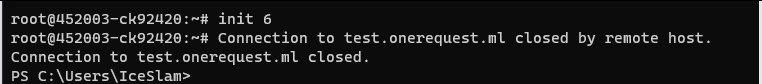 Для этого в терминале пропишем команду init 6, либо перезагрузим сервер в панели управления хостингом.