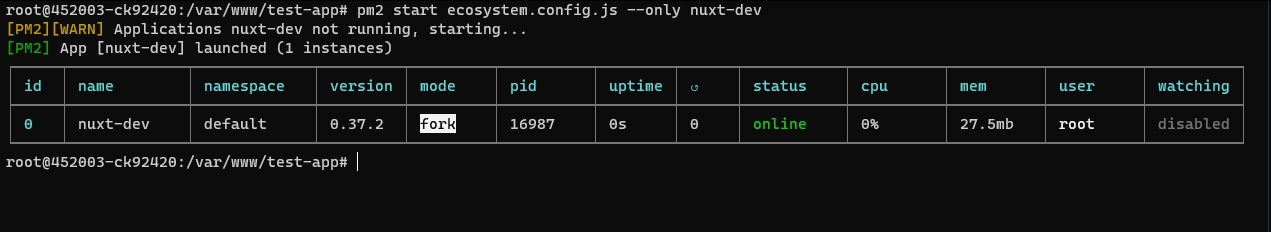 Шаг 5. Запуск Node.js-приложения (в нашем случае - Nuxt.js-приложения)