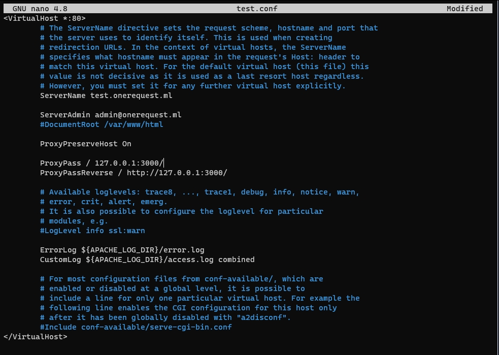 Затем, чтобы проксировать наше приложение на этот адрес, нам необходимо добавить следующие строки: