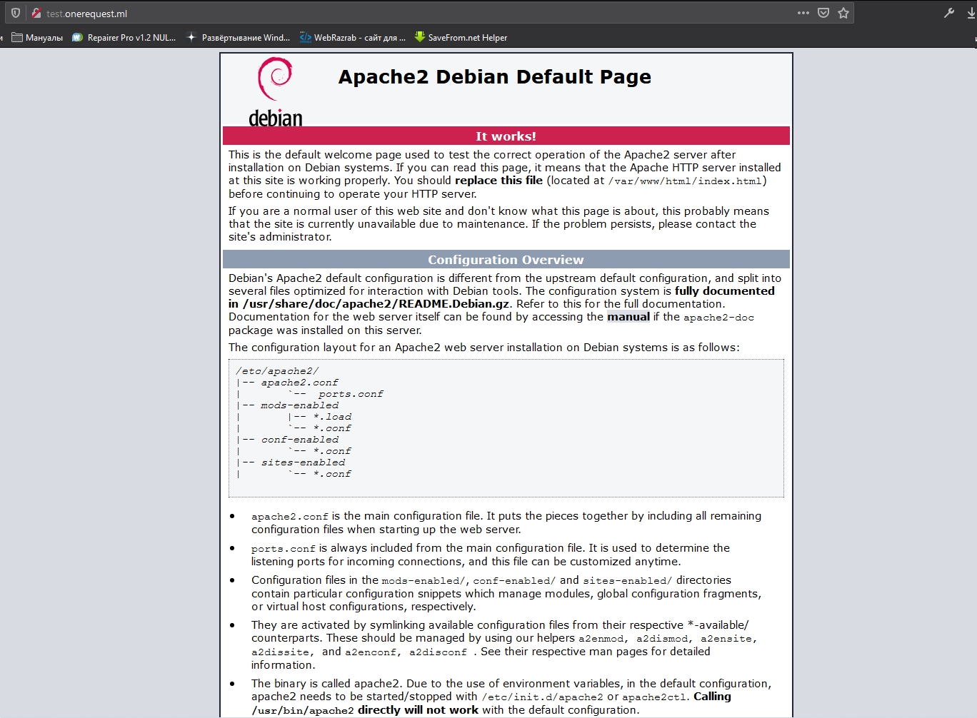 Как видим - приложение успешно открывается на необходимом нам адресе и стандартном порту веб-сервера Apache2
