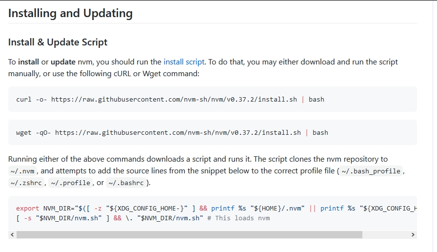 Для установки и более удобного дальнейшего контроля версий NodeJS мы установки менеджер версии NodeJS. Пакет называется nvm.