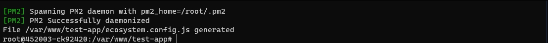 Для этого перейдем в папку с проектом и запустим команду инициализации менеджера pm2: